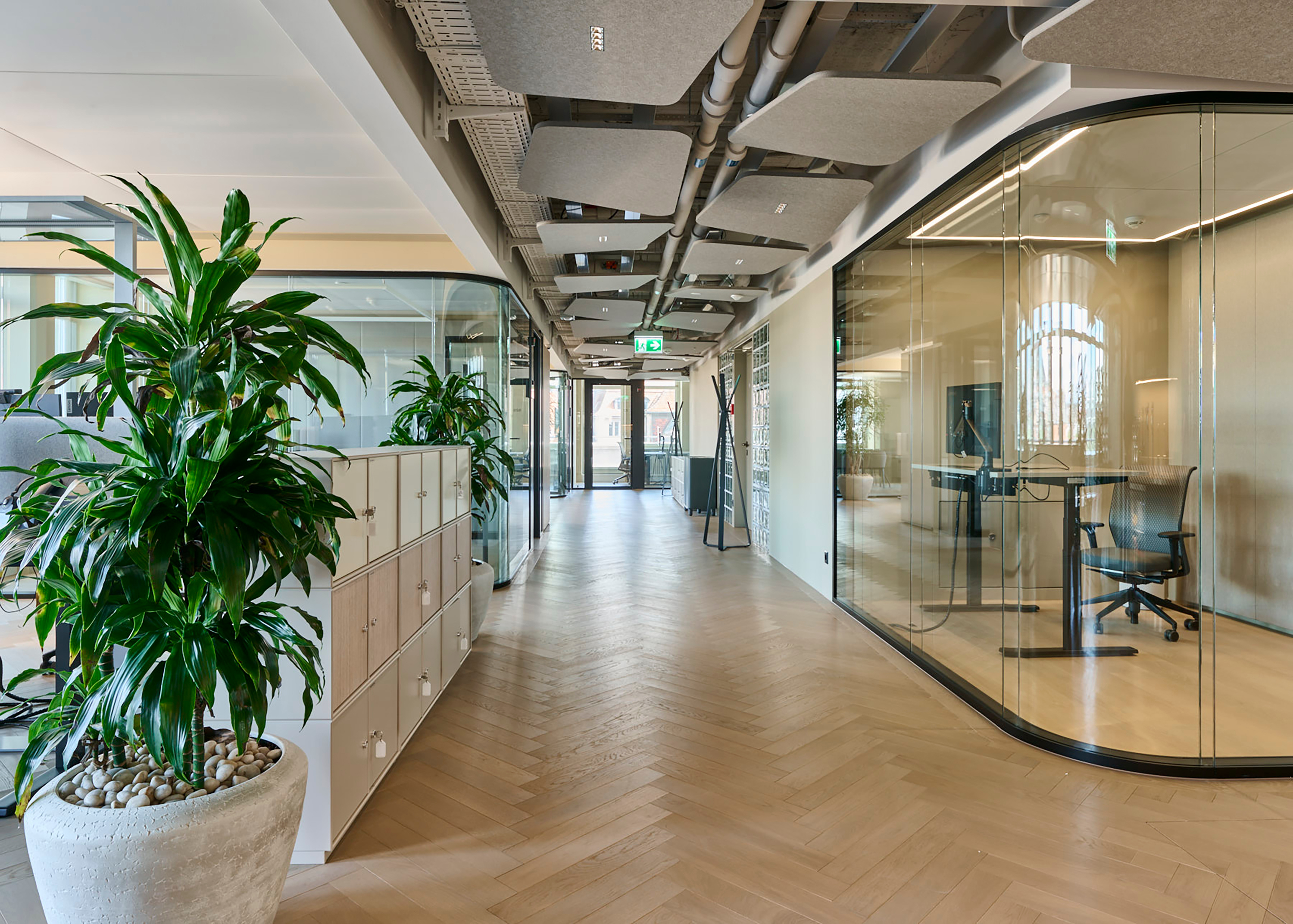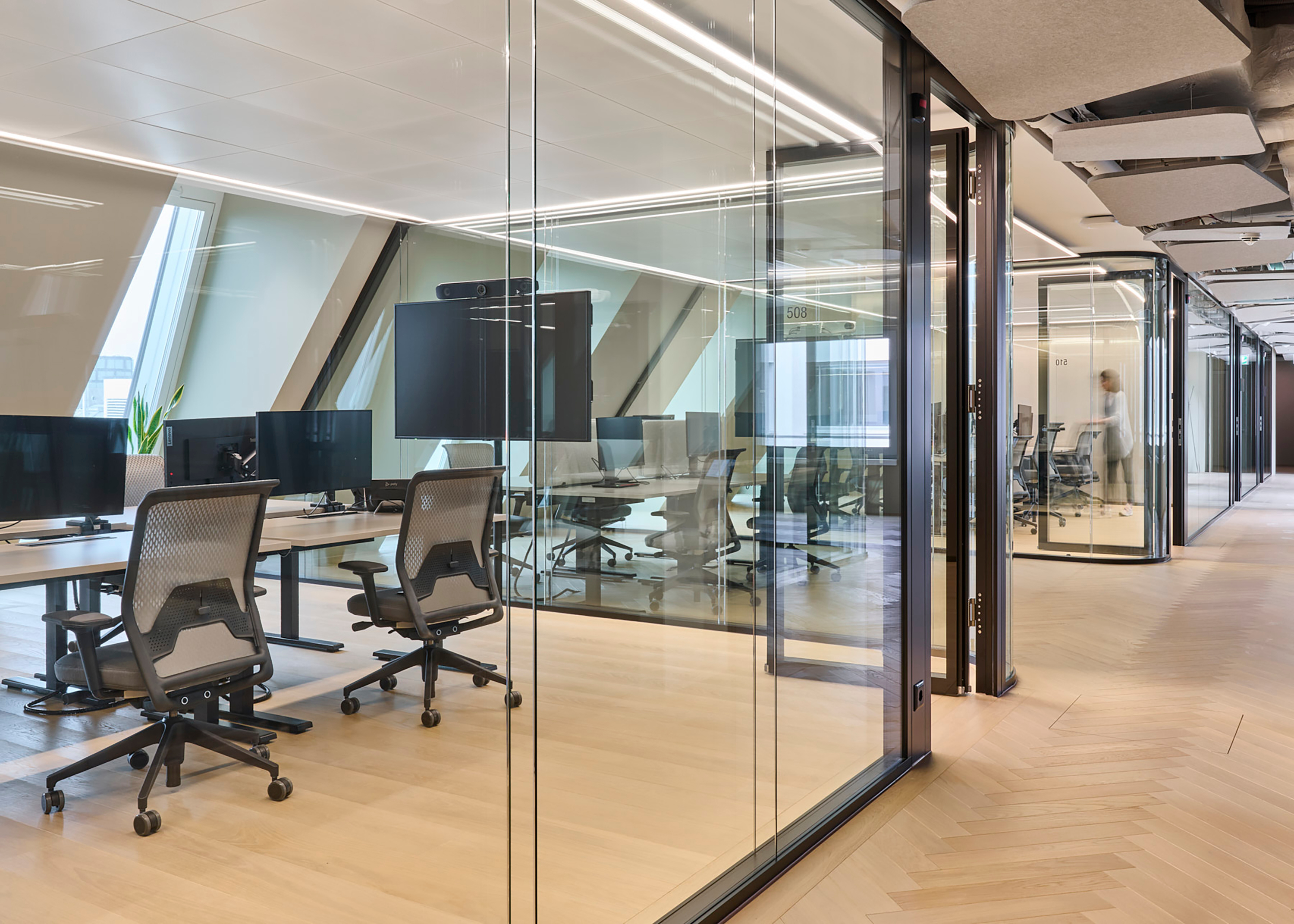 Das Projekt umfasste 1.250 m² doppelt verglaste Systemtrennwände und 38 Stück anspruchsvolle Glasrundungen. „Wir haben hier Glas an Glas gebaut. Speziell bei den Rundungen war es herausfordernd, dass alles perfekt passt. Auch die Metallprofile mussten in der Biegung genau dem Glas entsprechen“, erklärt Weber. Eine Aufgabe, die das Team mit Freude annahm. Das Team rüstete die Gläser zusätzlich mit Schalldämmfolien aus und erzielte einen Wert von R'w 40 dB (am Bau gemessen). Die Monteure meisterten die Installation der kniffligen Glasrundungen in nur 12 Wochen. „Bei diesem Projekt haben wir Transparenz im wahrsten Sinne geschaffen“, schwärmt Michael Weber.