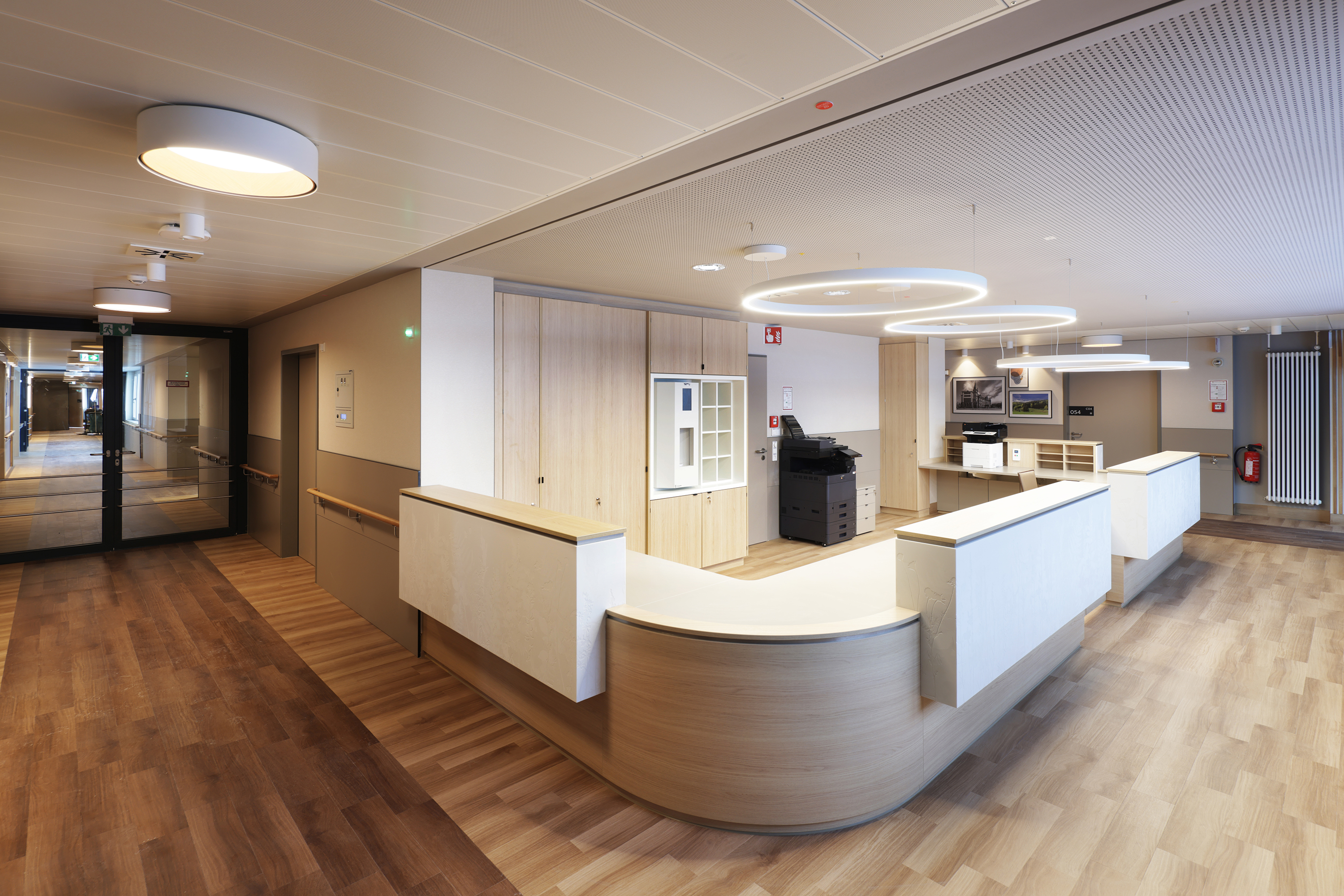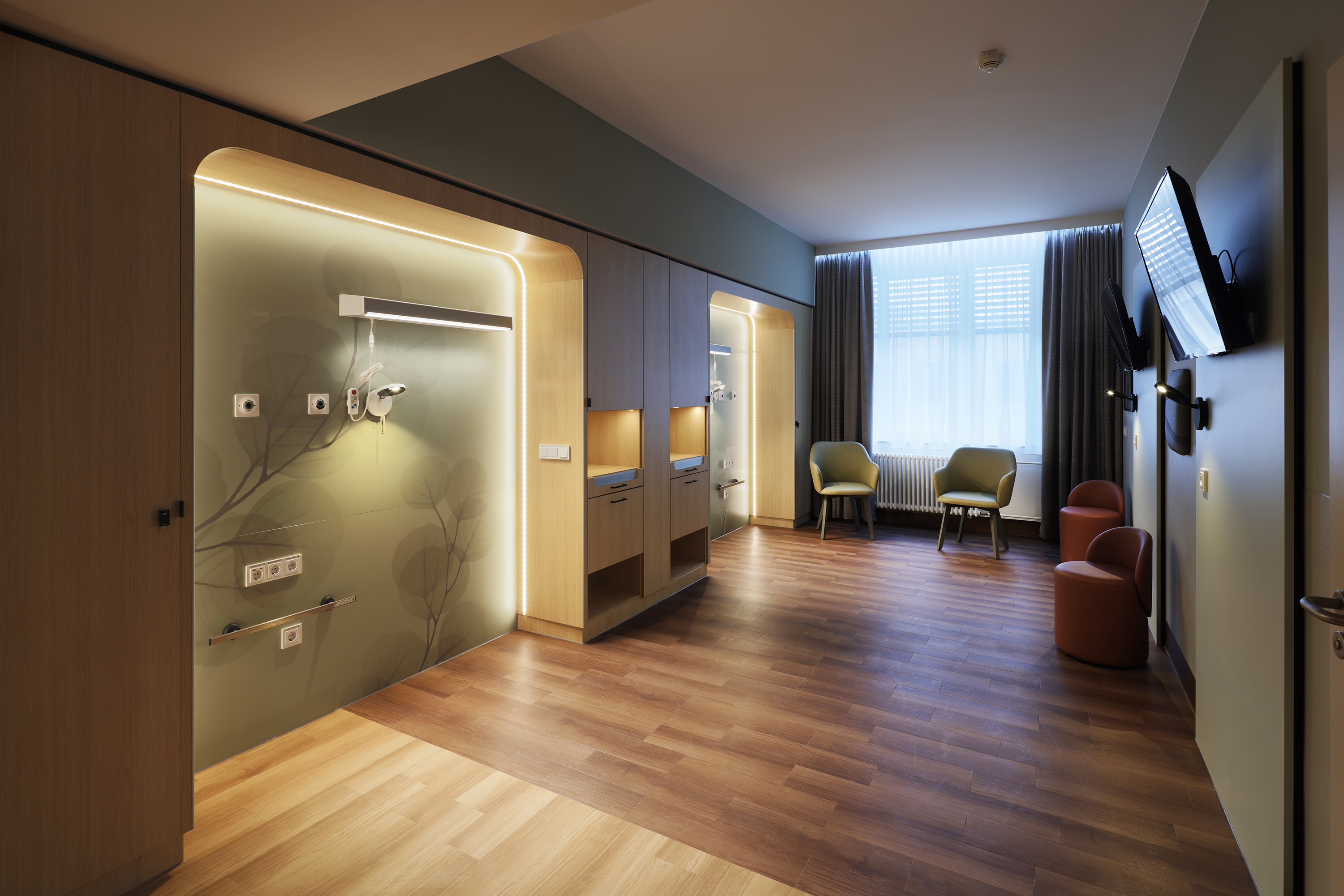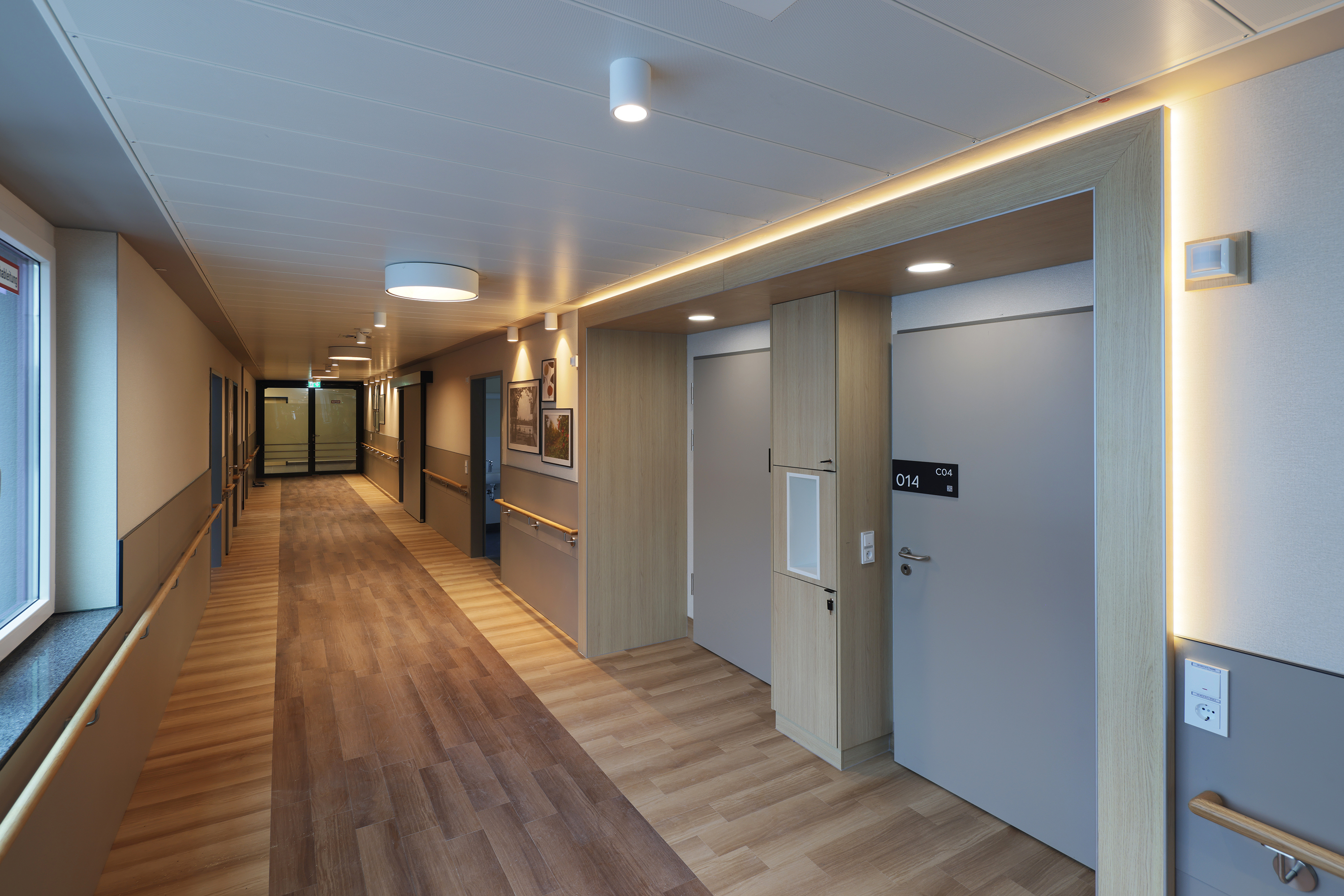 „Das neue Gebäude vereint alle Fachbereiche unter einem Dach. Das macht viele Wege kürzer", erklärt Horst Berger, Projektleiter bei Jaeger Ausbau. Die Dimensionen beeindrucken: Über 40.000 m² Trockenbauwände, davon 3.500 m² mit Strahlenschutzfunktion, über 30.000 m² Abhangdecken mit speziellen Anforderungen sowie über 2.600 Türen. „Wir haben dort aufwendige Strahlenschutzwände und OP-Schiebetüren der neusten Generation eingebaut. Das war technisch gesehen eine echte Herausforderung, aber mein Jaeger-Team hat das mit großem Einsatz gemeistert", freut sich Berger.