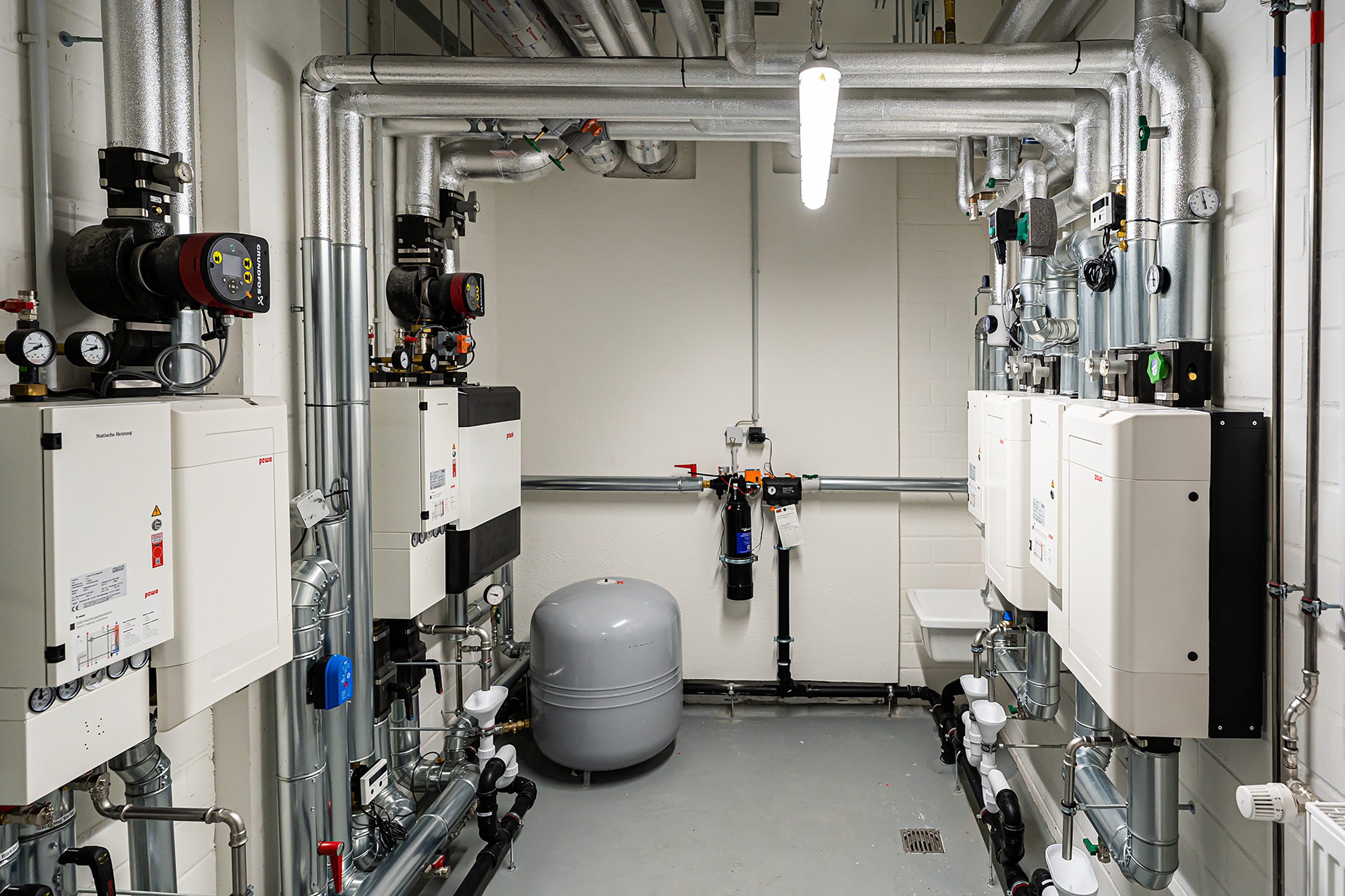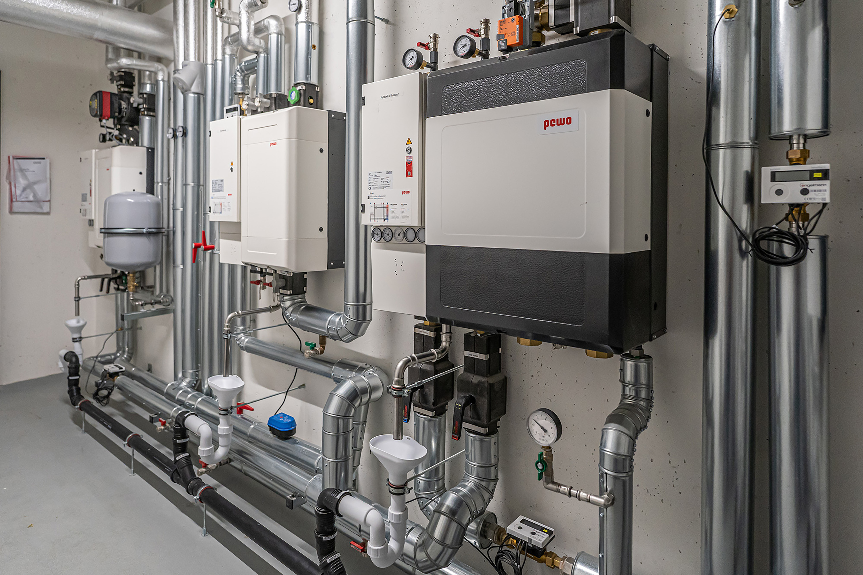 In der Hauptstadt hat Jaeger in einem Jahr und drei Monaten einen neuen Wohnblock gebaut. Entstanden sind 184 Wohnungen mit neun Eingängen und zwei Tiefgaragen. Gearbeitet wurde nach dem Lean-Terminketten-Prinzip: Verschiedene Bauabschnitte wurden wochenweise getaktet, eine Herausforderung in puncto Personal und Material. Doch Jaeger Haustechnik hat sie gemeistert und in den hochwertigen Wohnungen Edelbäder mit bodengleichen Duschen, Geberit-Ausstattung sowie Armaturen von Grohe verbaut. Für die Versorgung der einzelnen Häuser wurden jeweils eigene Druckerhöhungen und Fernwärmestationen installiert.