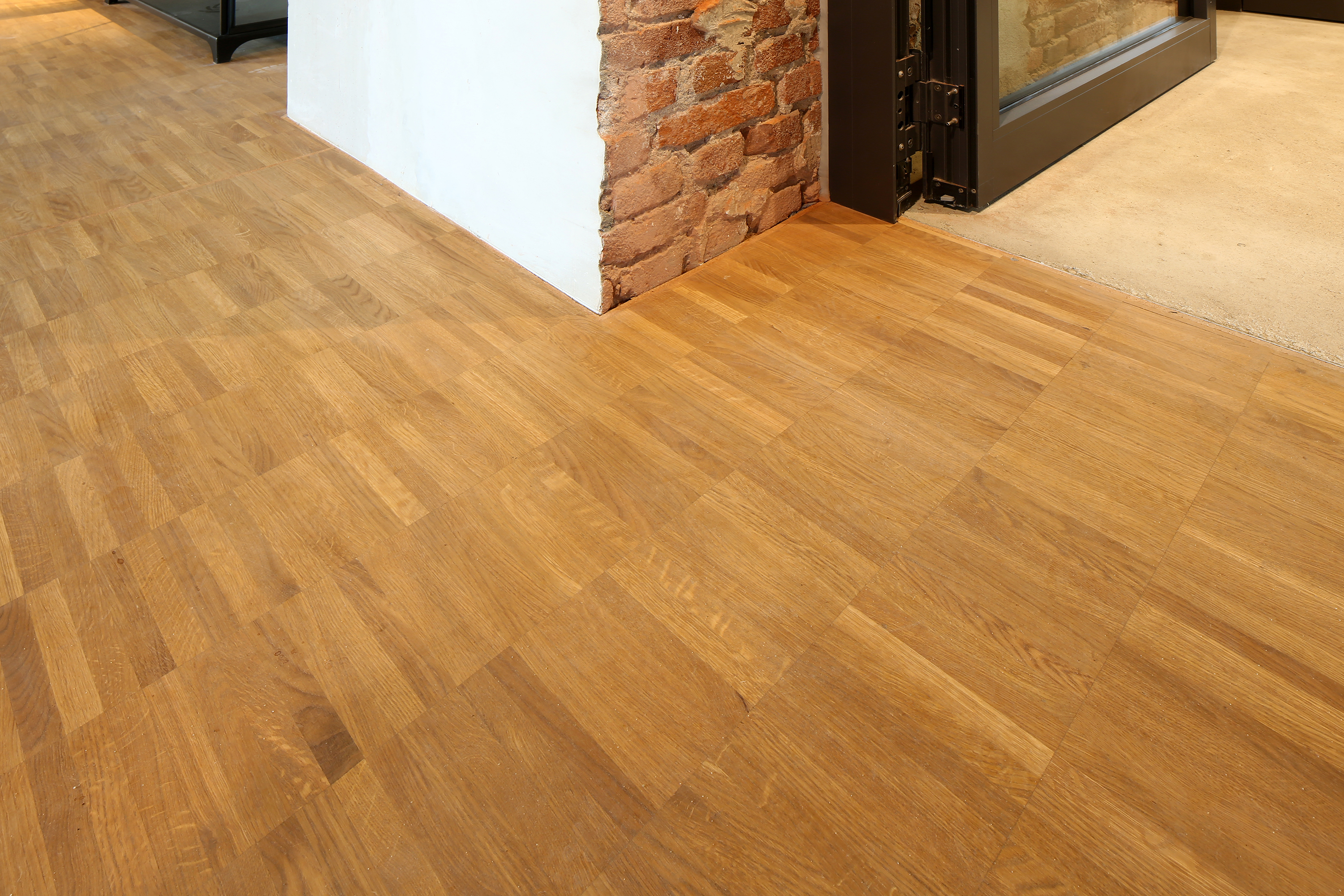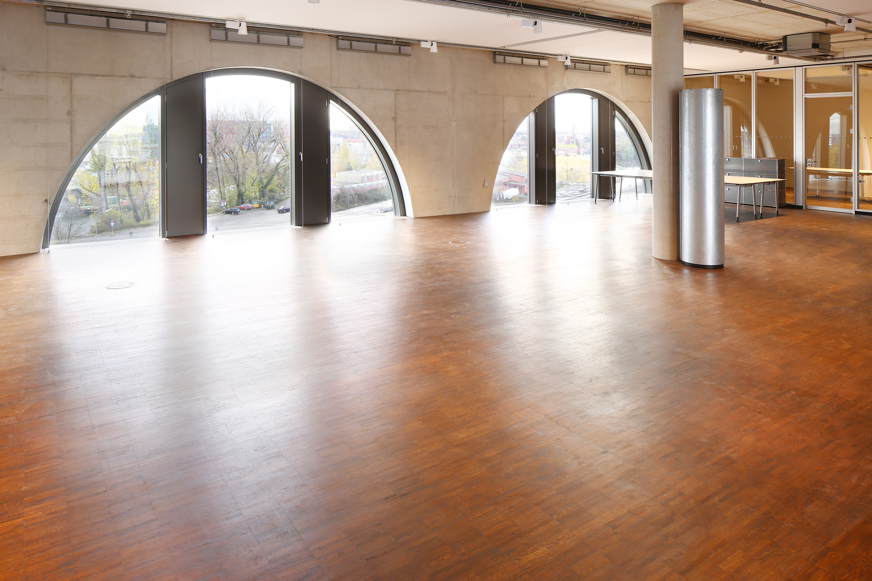 In denkmalgeschützter Bausubstanz waren 3.500 m2 massives Mosaikparkett Eiche geölt (8 mm stark) im Parallelverband zu verlegen. Als Basis diente ein Hohlboden mit Fließestrich.