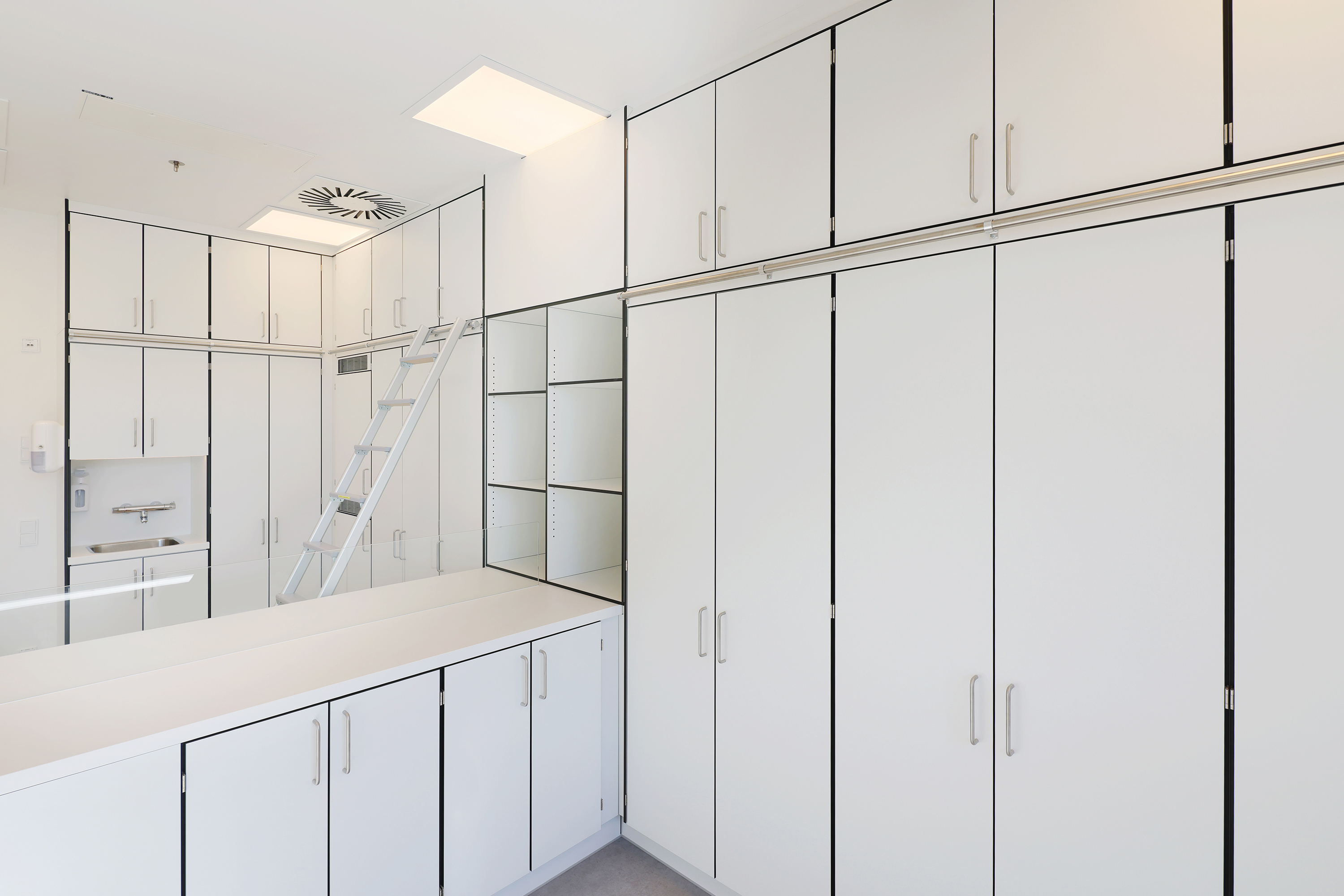 Jaeger Modulbau – ein Schwesterunternehmen aus der Jaeger Gruppe – koordinierte als Generalunternehmer das Millionen-Projekt, während Jaeger Haustechnik Arnsberg die anspruchsvolle Sanitär- und Lüftungstechnik installierte – in Teilen bereits im Werk in der Modulfertigung. Die Innenausstattung durch Jaeger Möbel Plus in Schmallenberg rundete das Projekt ab. Die technischen Anforderungen an die Lüftungssysteme waren hoch: Durch die Einbauten kann das Krankenhaus zwischen Unter- und Überdruck wechseln. Der Anschluss der Haustechnik an den Bestand ist durch die neuen Zimmerzuschnitte erschwert worden.