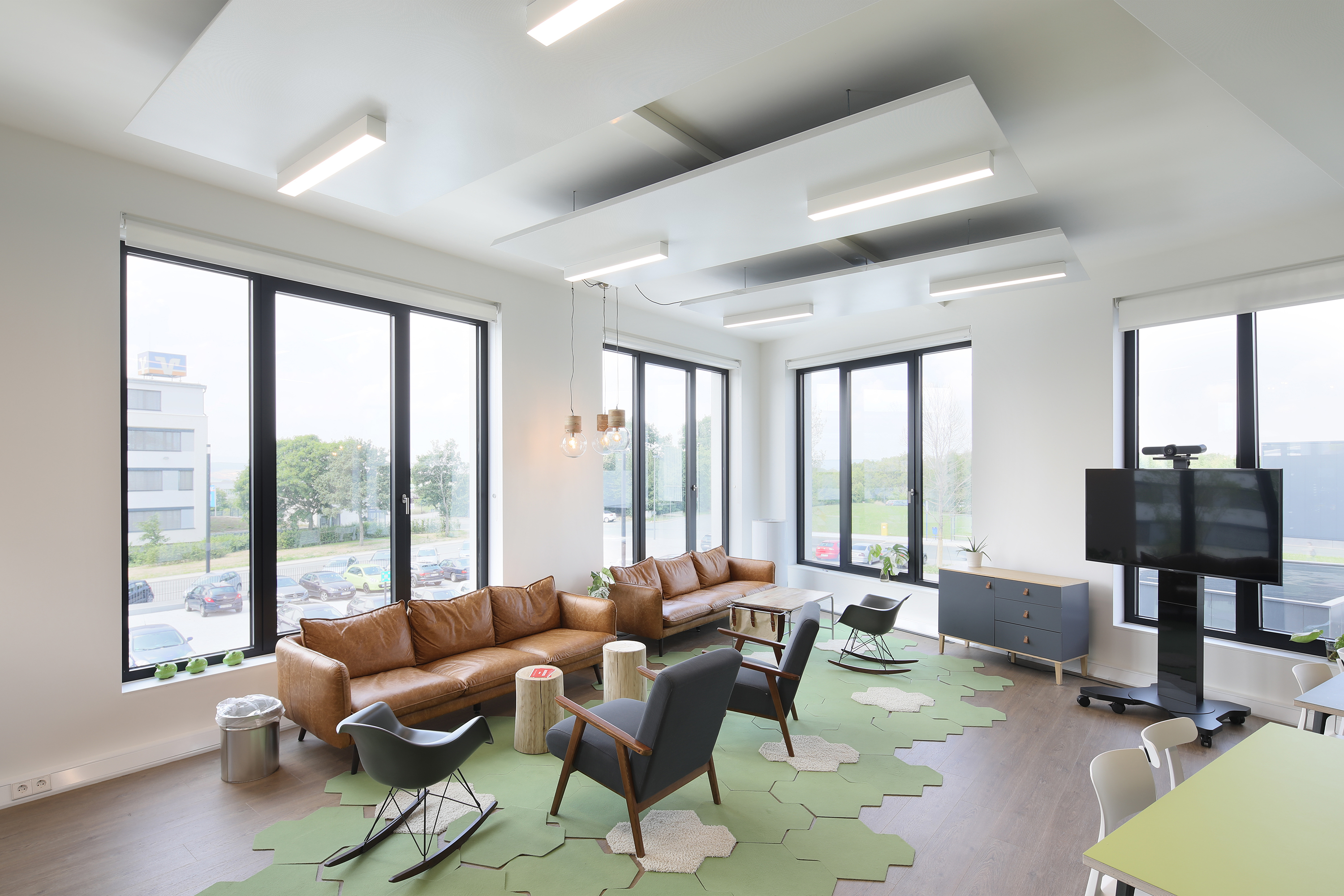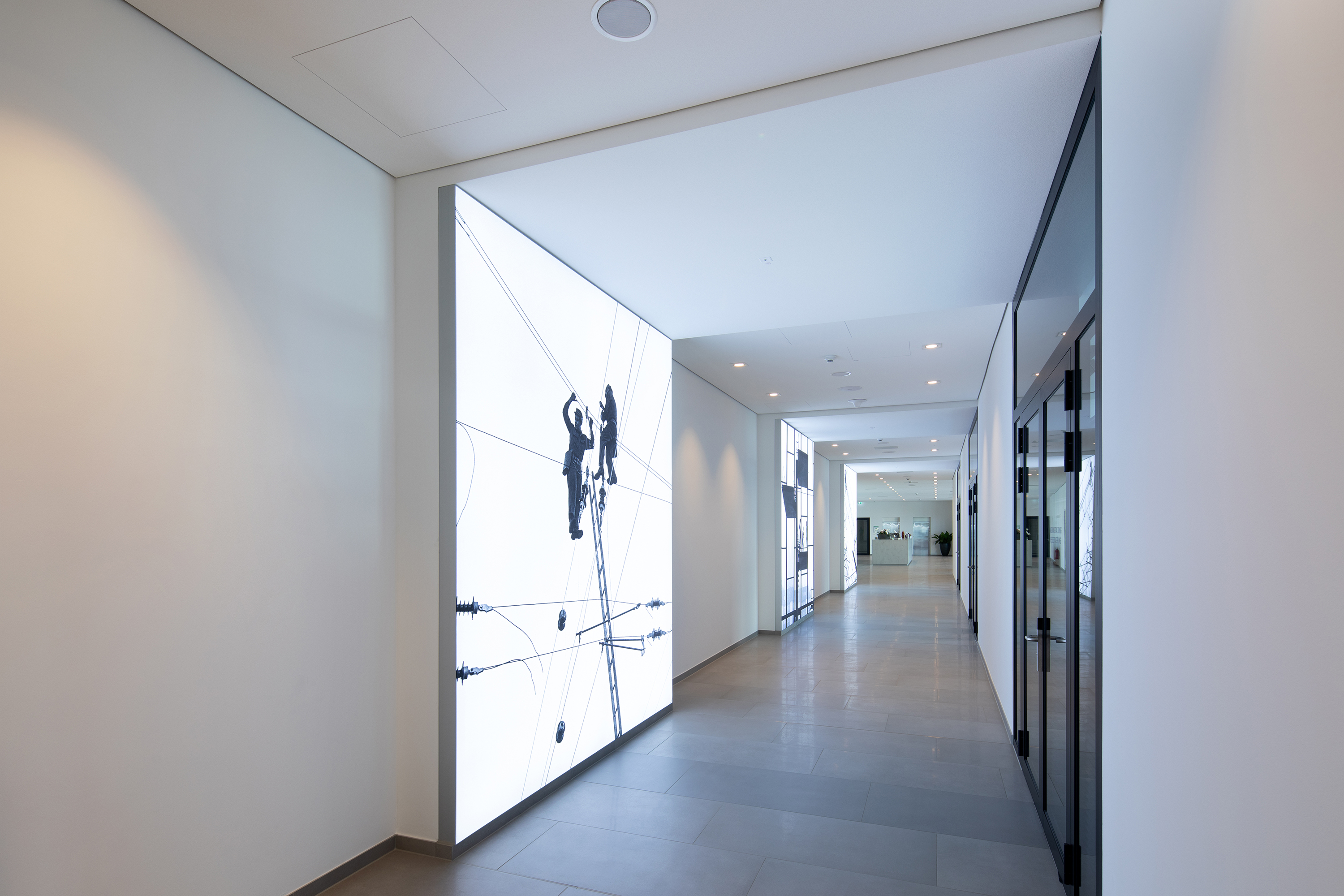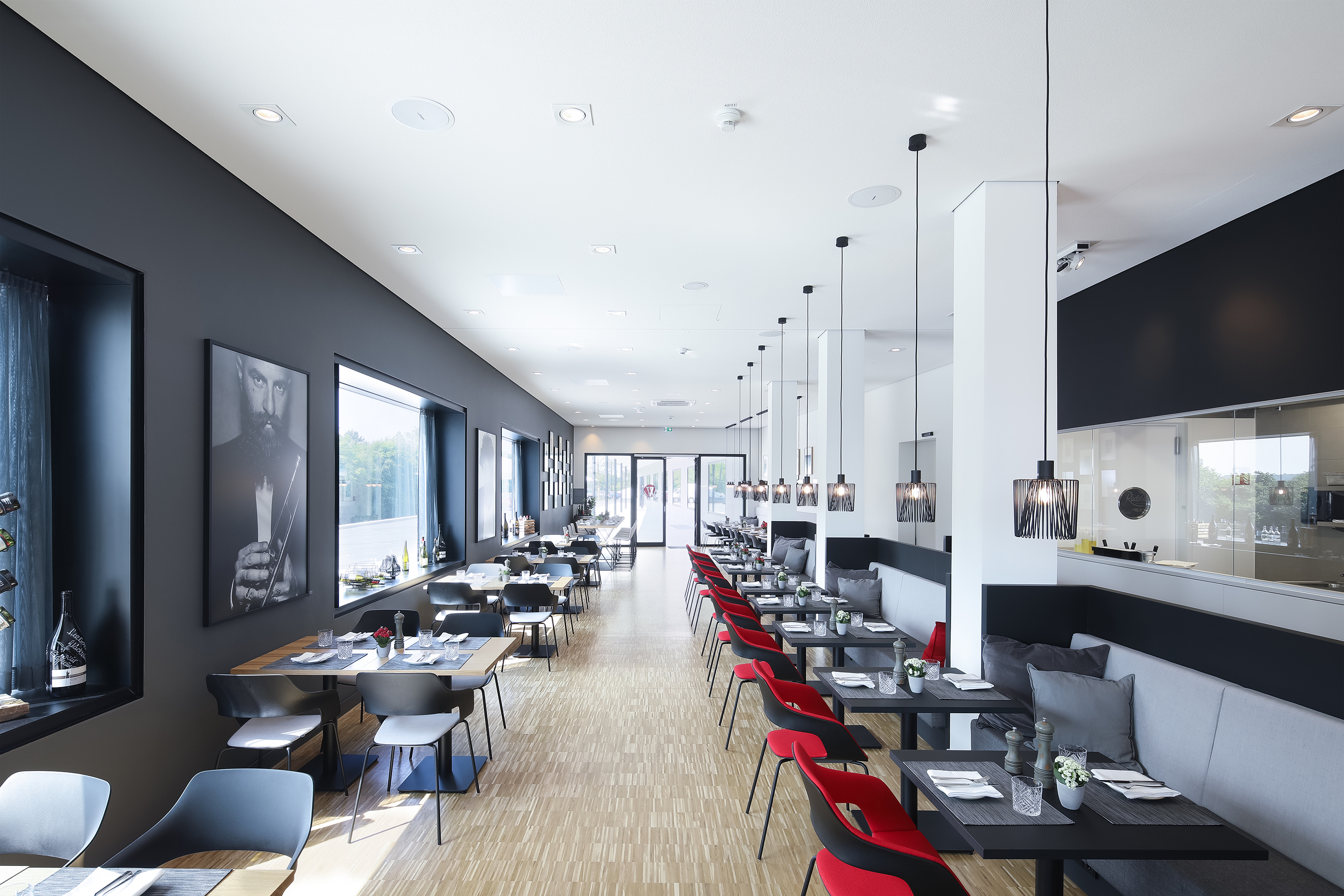 Eine besondere Herausforderung in der neuen „Leica-Welt“ stellten die extrem hohen Anforderungen an die fertigen Oberflächen dar, wie z. B. die Akustikdecken aus Blähglasgranulat und ihre maximal zwei Millimeter dicke Mikroporbeschichtung. „Um den Putz spritzend auftragen zu können, mussten wir extrem exakte Oberflächenarbeiten ausführen“, erklärt Mohamed Sow. „Aber dafür sind die Profis von Jaeger Ausbau ja schließlich da!“