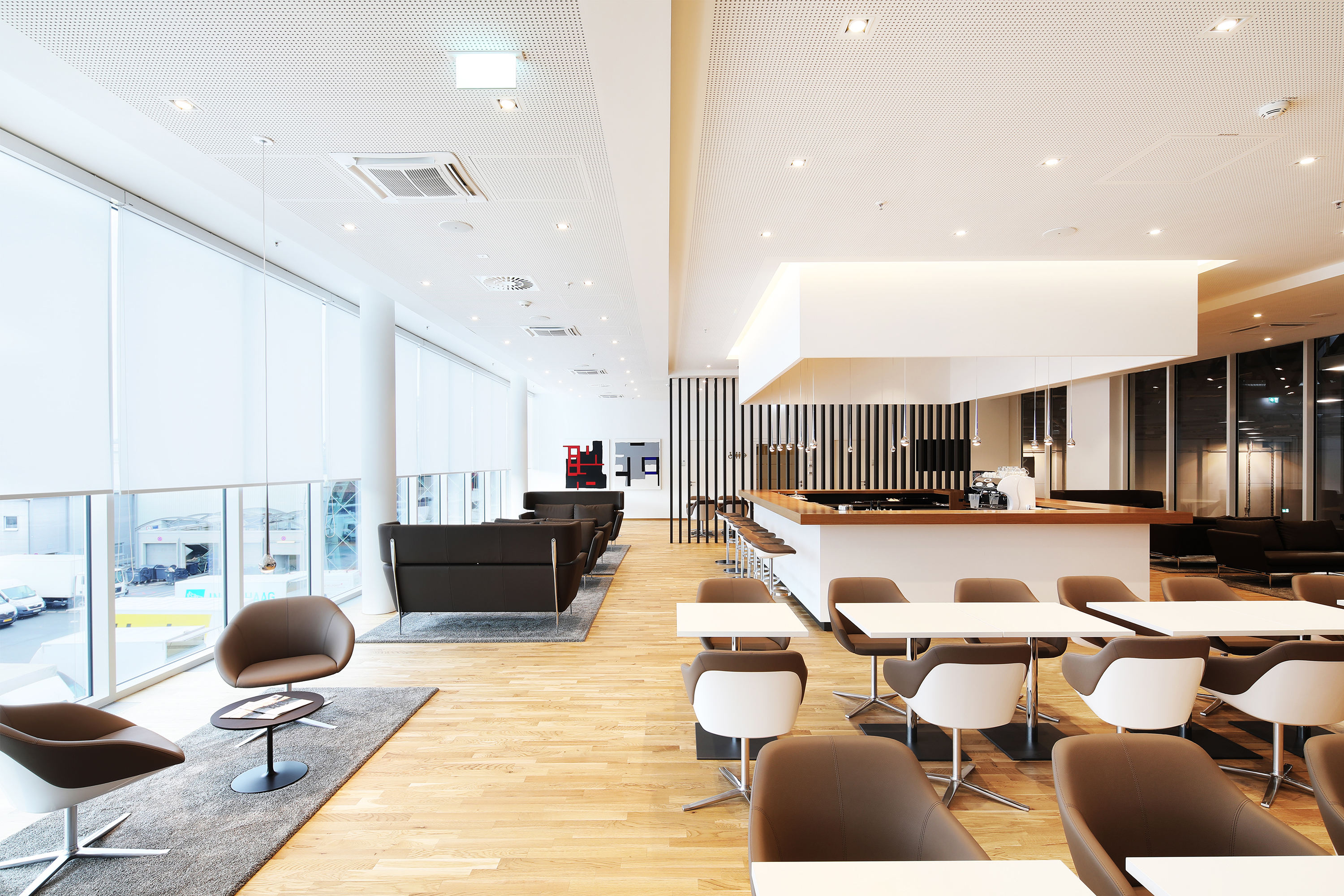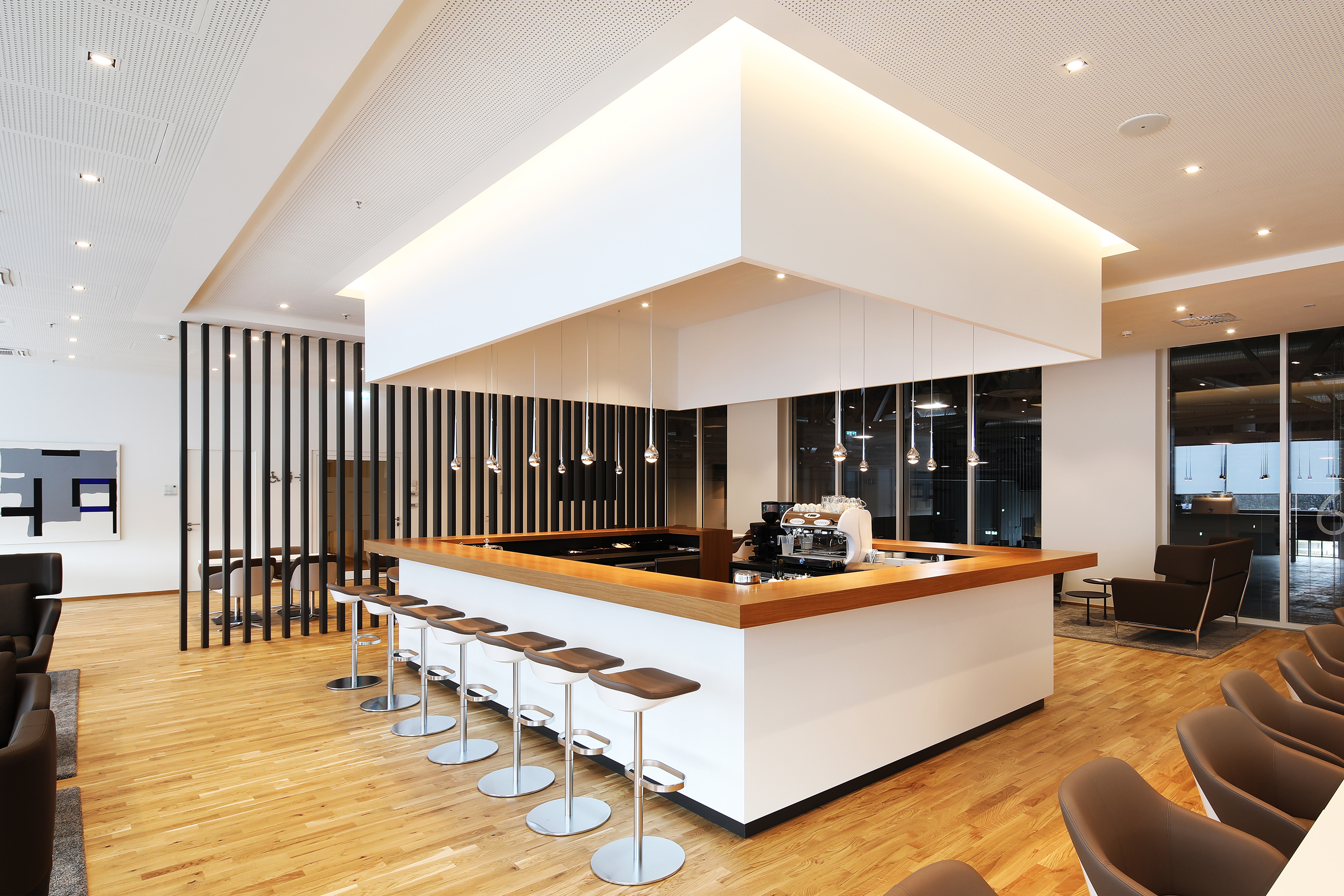 Dabei wurden das moderne, lichtdurchflutete Foyer und die Büros auf dem gesamten Messegelände von Jaeger Ausbau Dortmund komplett erneuert. Spektakulär und nicht alltäglich war die zwölf Meter hohe Decke im Foyer, wo 1.200 m² Lochdecken verbaut werden mussten. „Diese Höhen haben wir nur ganz selten, eine funktionale und sichere Lösung war gefragt und wurde von uns gefunden. Wir haben schließlich mit vier Hubsteigern agiert und alle Arbeiten von den Hebebühnen aus durchgeführt. Das war echt eine Herausforderung, hat aber am Ende sehr gut geklappt“, erklärt Pieper. Der Erfolg gibt ihm recht.