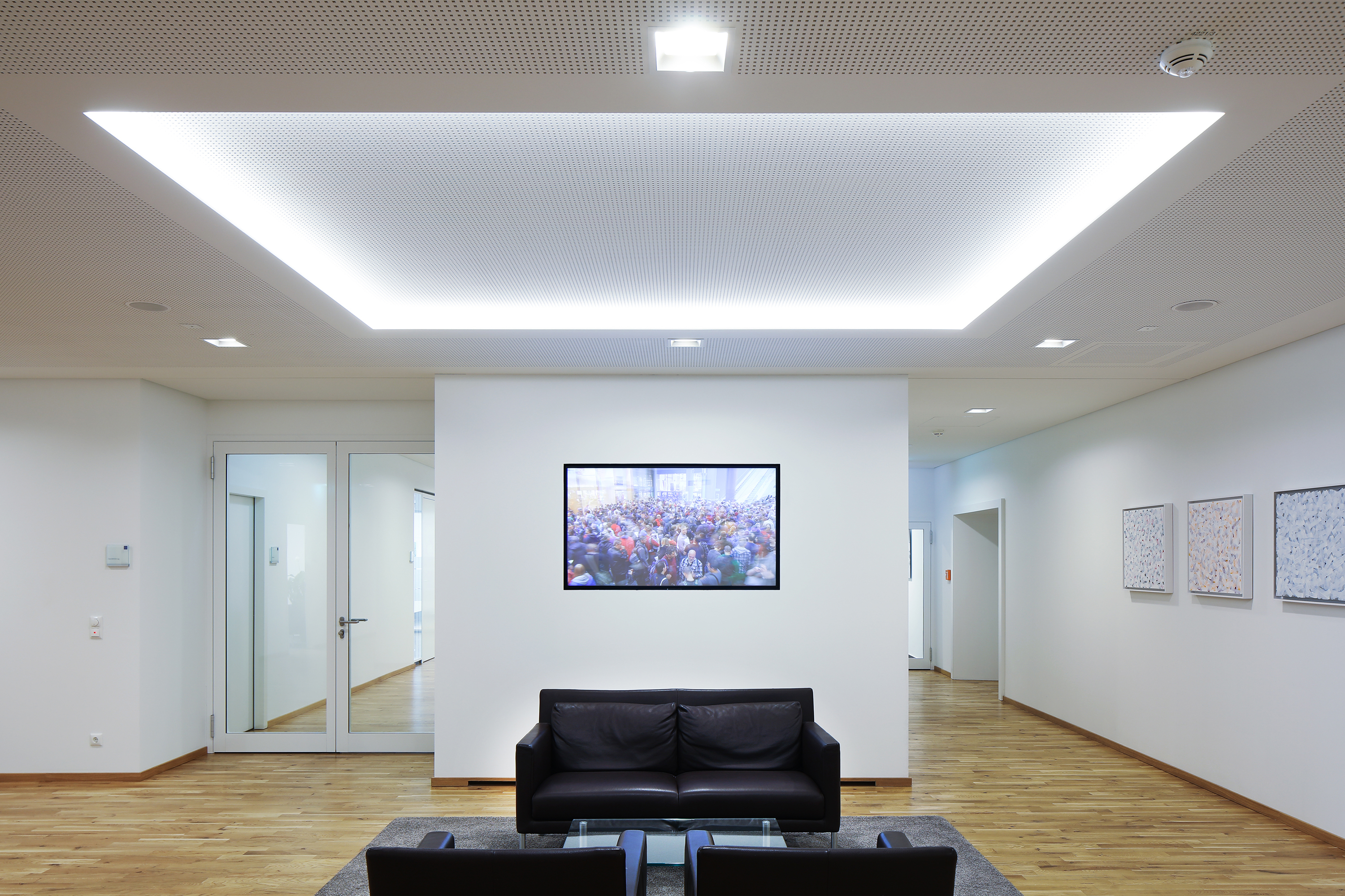 Bereits für den ersten Bauabschnitt wurde Jaeger Ausbau ins Boot geholt. Jetzt folgte Teil 2. Von Juli 2017 bis Sommer 2019 wickelten die Dortmunder Ausbau- und Maler-Standorte mit rund 35 Malern und Trockenbauern den Innenausbau ab. Über 10.000 m² Material flossen dabei in die Gebäude: verschiedenste Deckensysteme, auch mit Brandschutzanforderungen, dazu Wandabsorber, Türanlagen und Verglasungen. „Der Zeitplan war wirklich sehr, sehr eng, aber mit unserer enormen Manpower und der guten Zusammenarbeit mit der Implenia Hochbau GmbH als Bauherr konnten wir ihn erfolgreich umsetzen“, so Projektleiter Jürgen Pieper.