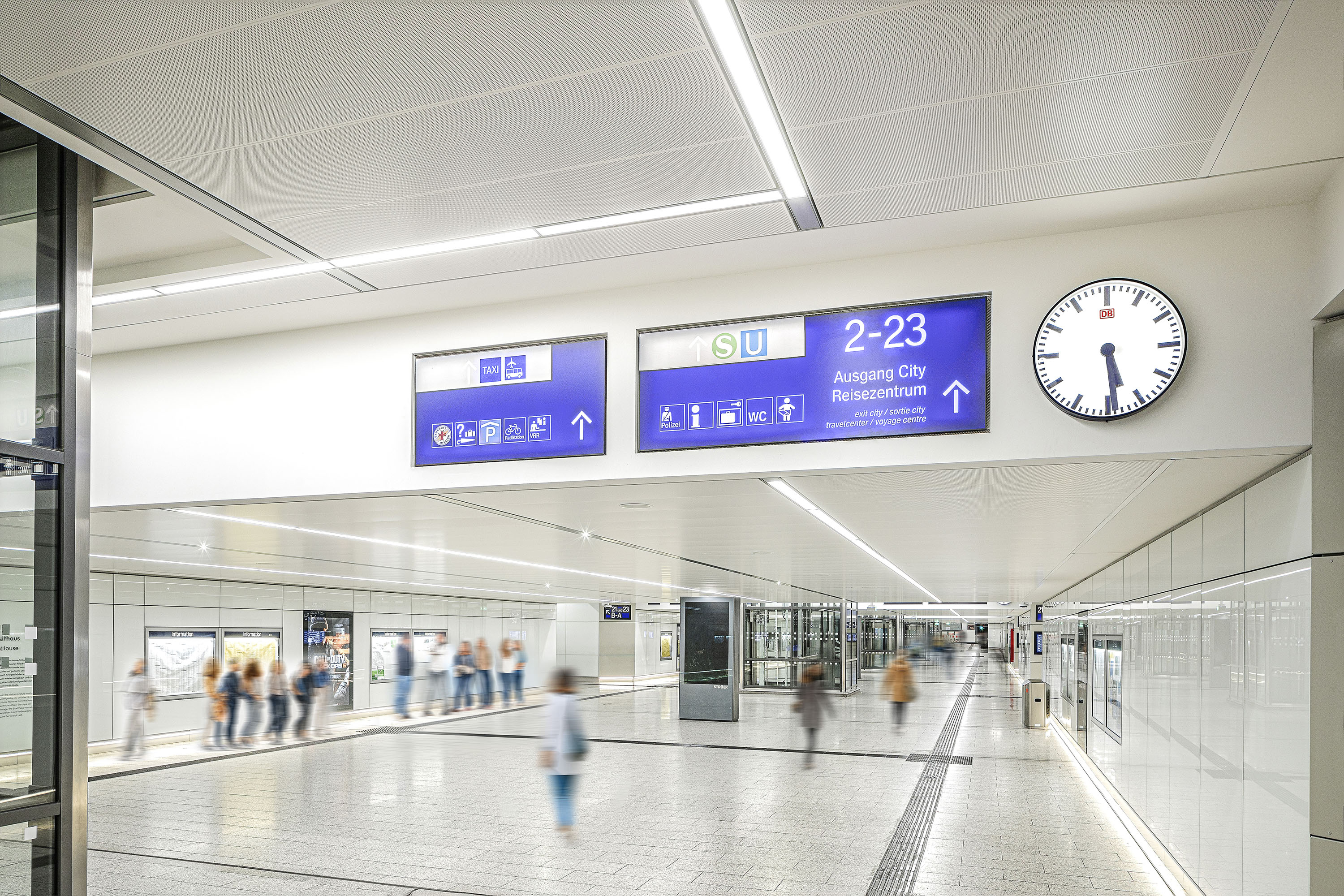 „Der Hauptbahnhof wurde komplett saniert. Vom Auftraggeber IHT kamen die Behindertenzugänge für die Bahnsteige, wir schufen unter anderem die Decken, die alles überspannen“, erklärt Dörre. Die Herausforderung: Der gesamte Umbau musste im laufenden Betrieb erfolgen. „Ganz wichtig war, dass der Laufweg stets mindestens 4 m breit sein sollte. Der Auftraggeber hat hier immer genau nachgemessen“, berichtet der Projektleiter. Jeder Bauabschnitt hatte präzise Terminvorgaben. Wenn es kritisch wurde, schob das Team Nachtschichten ein. Eine technische Besonderheit stellte die Paneldecke an einem speziellen Bahnsteig dar. „Die wurde so konzipiert, dass ein ICE mit 100 km/h durchfahren kann, ohne dass die Decke wegfliegt“, sagt Dörre nicht ohne Stolz.