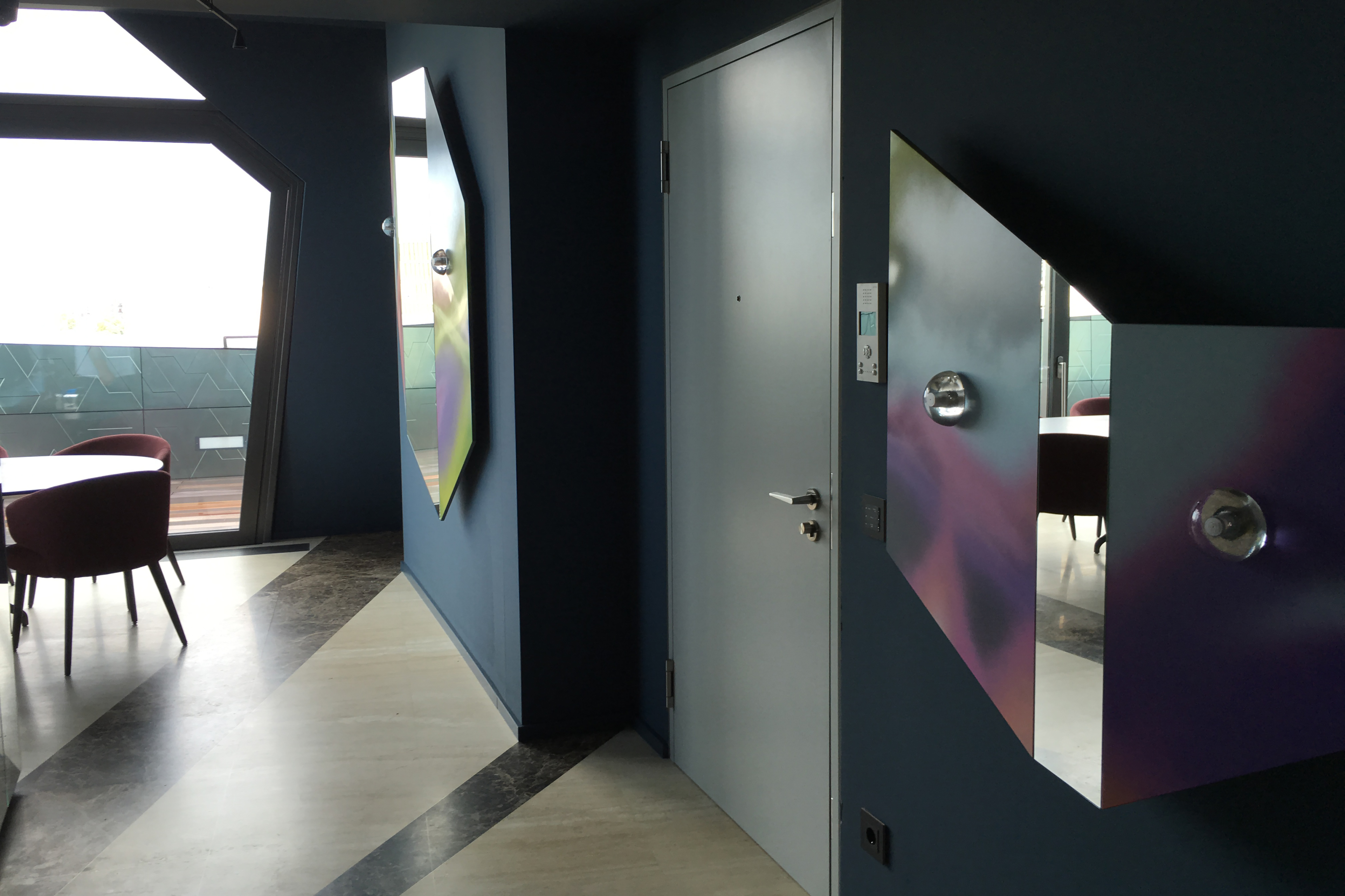 Die Ausführung der hochwertigen Innentüren erfolgte im Apartmenthaus Sapphire in Berlin, entworfen von Studio Libeskind. Die besondere, kristalline Architektur des Gebäudes mit zahlreichen schrägen und geneigten Wandflächen stellte hohe Anforderungen an den Innenausbau.