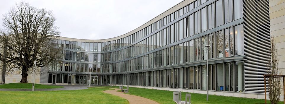 Der Neubau steht ganz im Zeichen von Transparenz, Kommunikation, Begegnung und Lebendigkeit. Licht durchfluteter Mittelpunkt ist ein 600 Quadratmeter großes und vier Geschosse übergreifendes Foyer. Die Glas- und Metallbauarbeiten wurden in weiten Teilen von Jaeger Ausbau gefertigt und montiert. Dazu zählen gebogene Stahl-Glas-Wände; Edelstahl-Glas-Geländer, die große gebogene Stahltreppe im Foyer mit Holzhandlauf und Glasgeländer sowie Stahl-Glas-Rohrrahmentüren System Jansen (T30, T90, RS).
