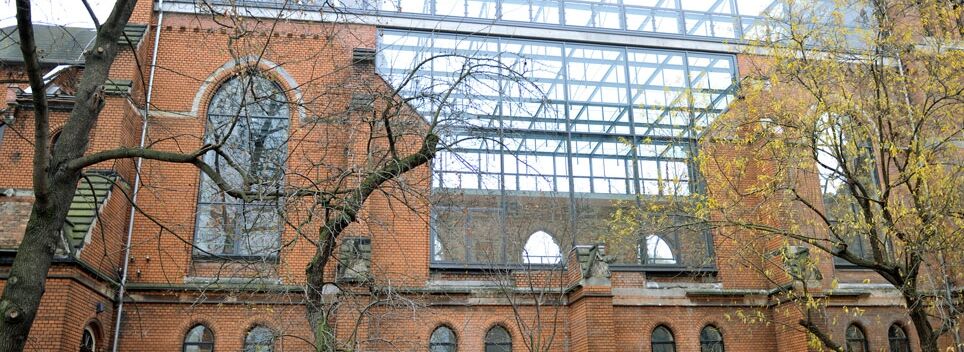 Die Lösung waren ein neues Glasdach sowie seitliche Verglasungen der Fenster und Wandöffnungen. Unser Unternehmen Jaeger Glas- und Metallbau aus Leipzig bekam den Auftrag umfangreiche Verglasungen zu fertigen und einzubauen. Passend zum 400 m² großen Flachdach waren hochwertige und anspruchsvolle Verglasungen, im Speziellen eine neue Fensterrose, gefordert. Die seitlichen Glasfronten wurden mit einem ausgeklügelten Belüftungssystem versehen. Die Fensterelemente mussten mit einer eigens für das Objekt entwickelten Sonderkonstruktion und speziellen Öffnungselementen aus Stahlprofilen erstellt werden. Eine absolute Höchstleistung in Planung, Konstruktion und Ausführung war dabei die Anpassung an die stark beschädigten Konturen der Bogenelemente.