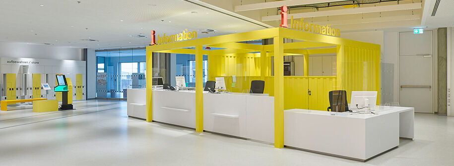 - Altes DHL-Logistikzentrum Innenstadt Düsseldorf: Umbau zur großflächigen öffentlichen Bibliothek in ‚Container-Optik‘